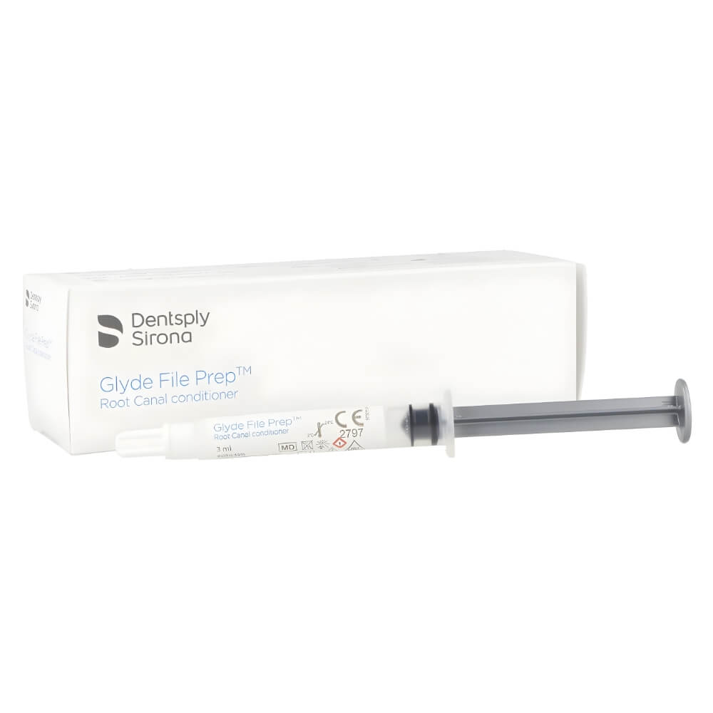 Glyde File Prep root canal conditioner is a chelating agent and lubricant used to soften calcification and aid in cleansing the root canal system.