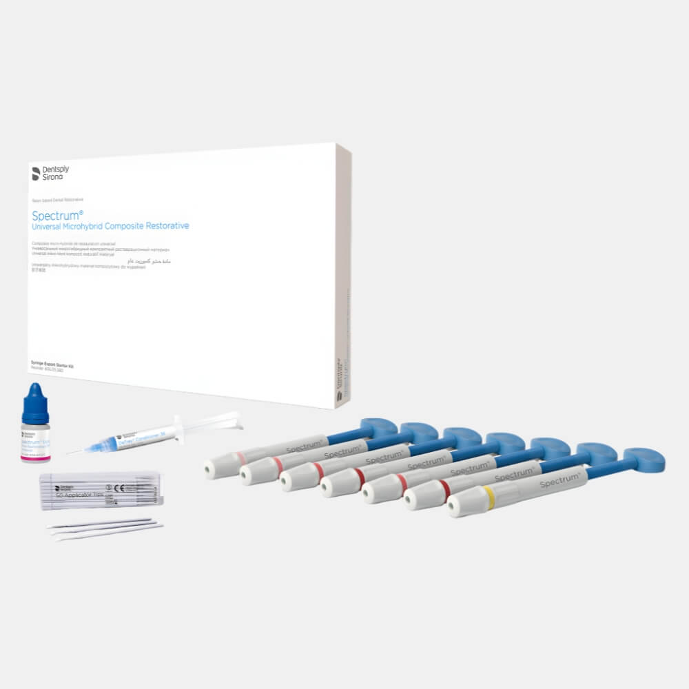 Spectrum is a Microhybrid composite with an ultrafine particle size for the manufacture of restorations in the anterior and chewing groups of teeth. The composite is available in dosing compules and traditional syringes and allows for precise shade matching on the Vita® scale.